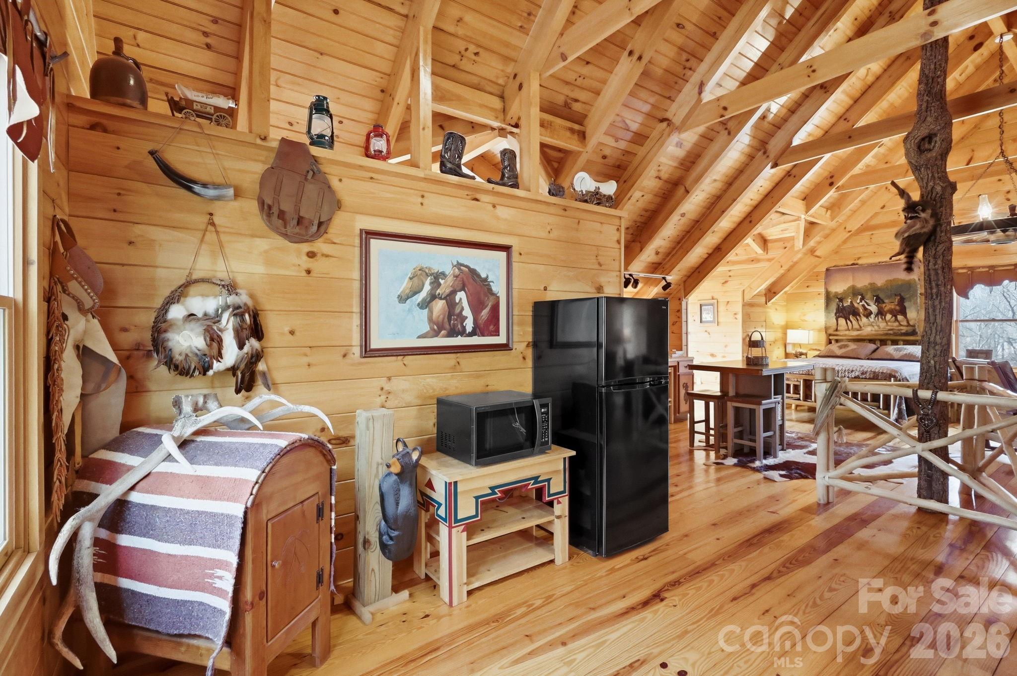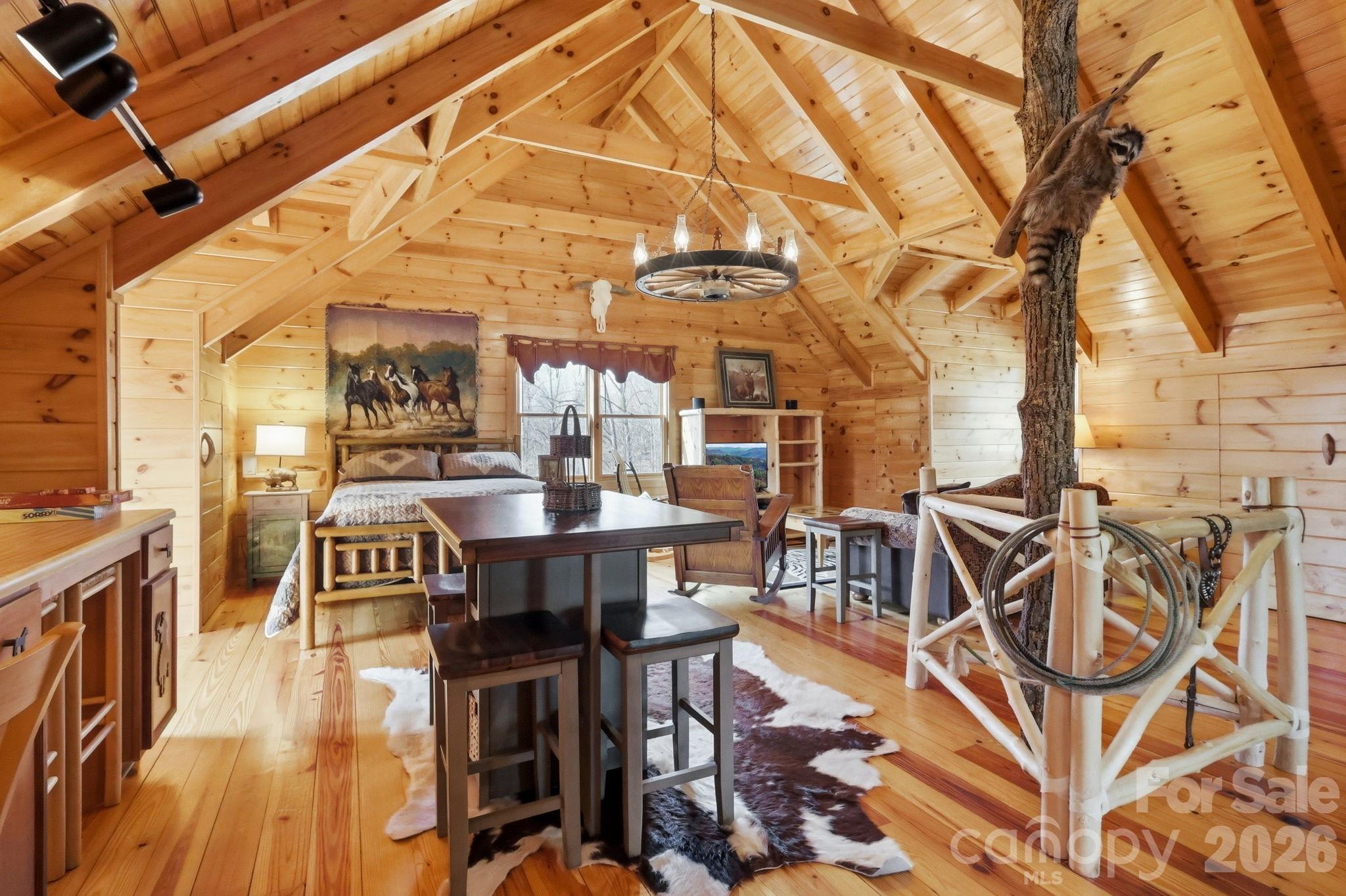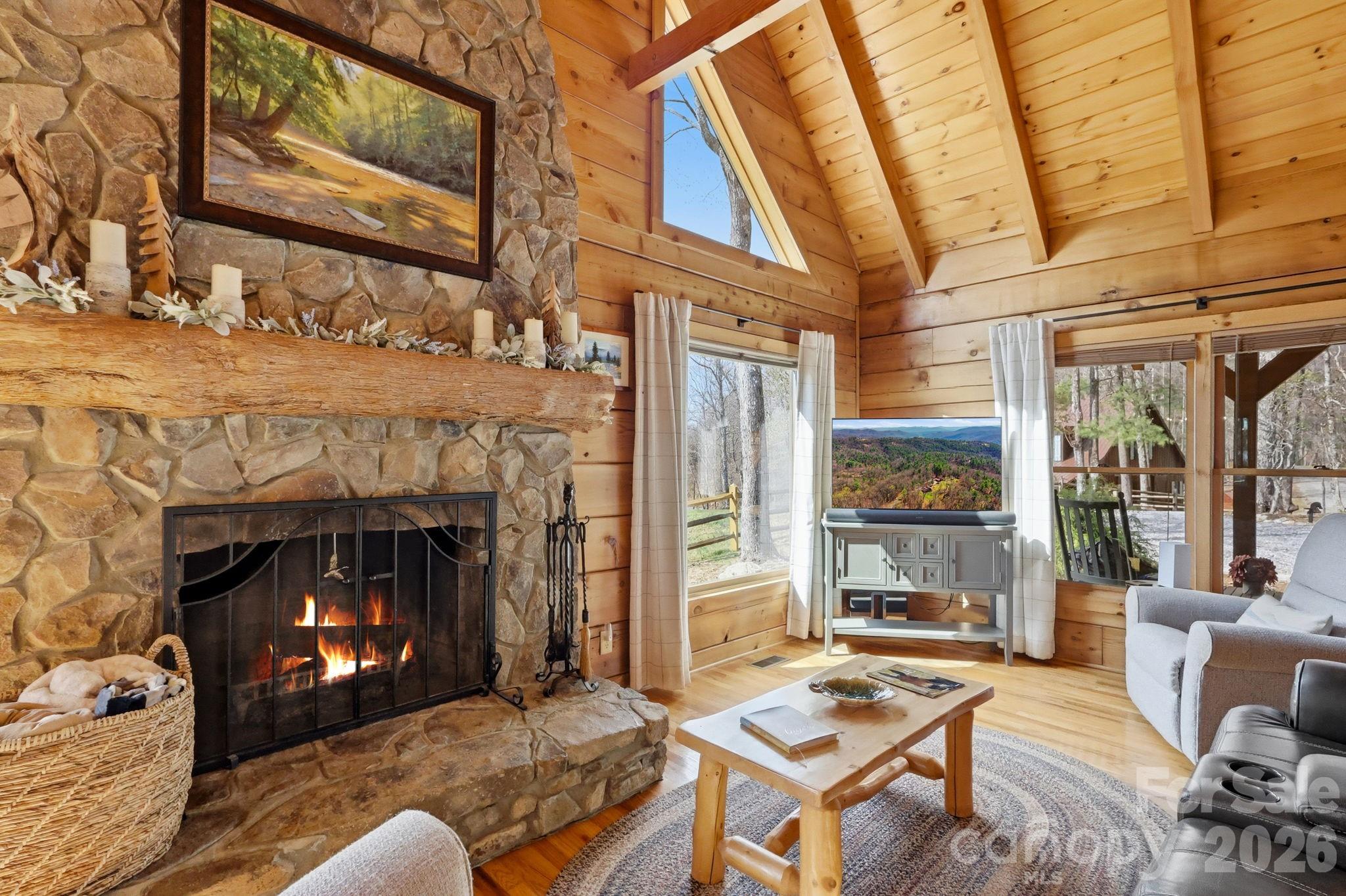 Saddle up and ride directly from your private 11.23-acre retreat! Located in the premier equestrian community of Leatherwood, this property features three fenced pastures, a run-in shed, and a custom 4-stall barn with a tack room and a stunning second-story apartment. The main cabin captures the "wow" factor with vaulted beam ceilings and a majestic wood-burning stone fireplace. Highlights include a main-level primary suite, kitchen with granite counters, second level with a large loft, guest suite with an ensuite full bathroom, and an expansive covered deck for sunset entertaining. The barn apartment is plumbed for a kitchenette and features its own HVAC/septic, which is ideal for guests, a rental, or a quiet home office. Bonus features: Carport, a detached storage building, and a ready-to-use chicken coop! Miles of trails await just minutes from your front door. Offered furnished with a few exceptions. BE SURE TO WATCH THE VIDEO OF THIS INCREDIBLE HORSE PROPERTY! Leatherwood is a gated community that offers extensive horseback riding & hiking trails, a swimming pool, tennis & pickleball. Commercial venues outside the entrance include a restaurant, equestrian center, zipline, and campgrounds. Convenient to Boone, Blowing Rock, West Jefferson & Wilkesboro.