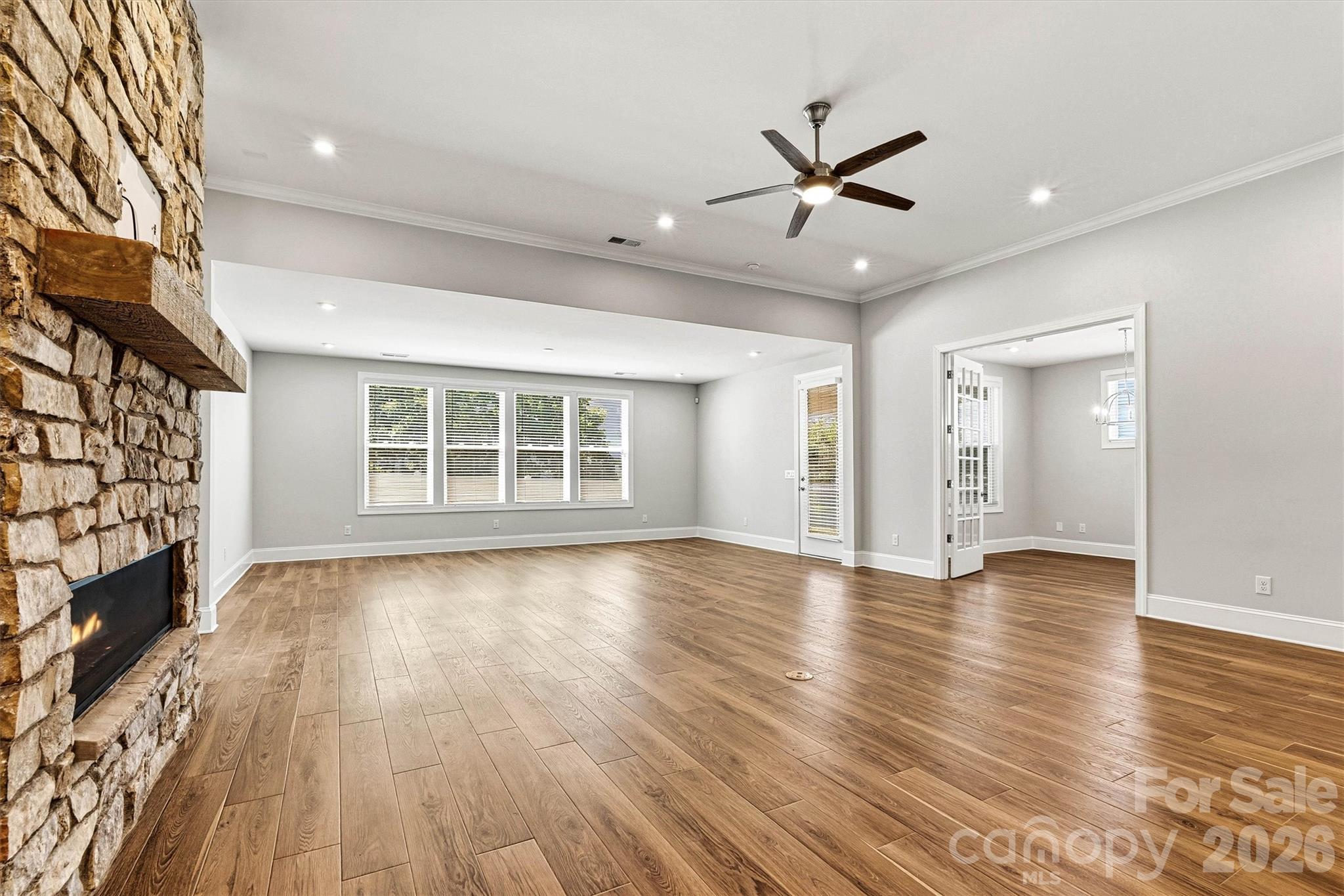 Welcome to 4448 Moxie Way-an exceptional Mulberry w/Bonus/Loft home offering 3,283 sq ft of HLA, 4 bedrooms, 4 full baths, flex space, separate dining room, and a finished bonus room with bath & closet. The oversized 3-car garage (773 sq ft) goes well beyond storage - featuring epoxy-coated floors, recessed lighting, painted interior walls, and a ductless mini-split system for year-round comfort. The gourmet Kitchen is fully loaded with upgraded cabinetry, quartz countertops, center island, gas cooktop, wall ovens, chimney hood, pot filler and GE Profile stainless appliance pkg. Luxury EVP flooring flows throughout every room and the staircase. The Sunroom opens to a screened lanai - ideal for year-round entertaining. A linear gas fireplace with stacked stone surround and cedar mantle anchors the main Living Room. The Primary Suite bath features quartz countertops, upgraded cabinetry, and a HUGE frameless glass spa shower enclosure with designer tile. Three additional full baths are equally well-appointed with quartz counters and Moen fixtures throughout. A study with French doors, insulated garage, and unfinished storage (397 sf) round out the structural highlights. Designer exterior package, upgraded interior paint, crown molding, and 7-1/4" baseboards complete this stunning move-in ready home. (This home served as the builder's temporary Construction Office during community development. It has never been sold or occupied as a residence. The home has been fully restored to residential condition prior to listing.)