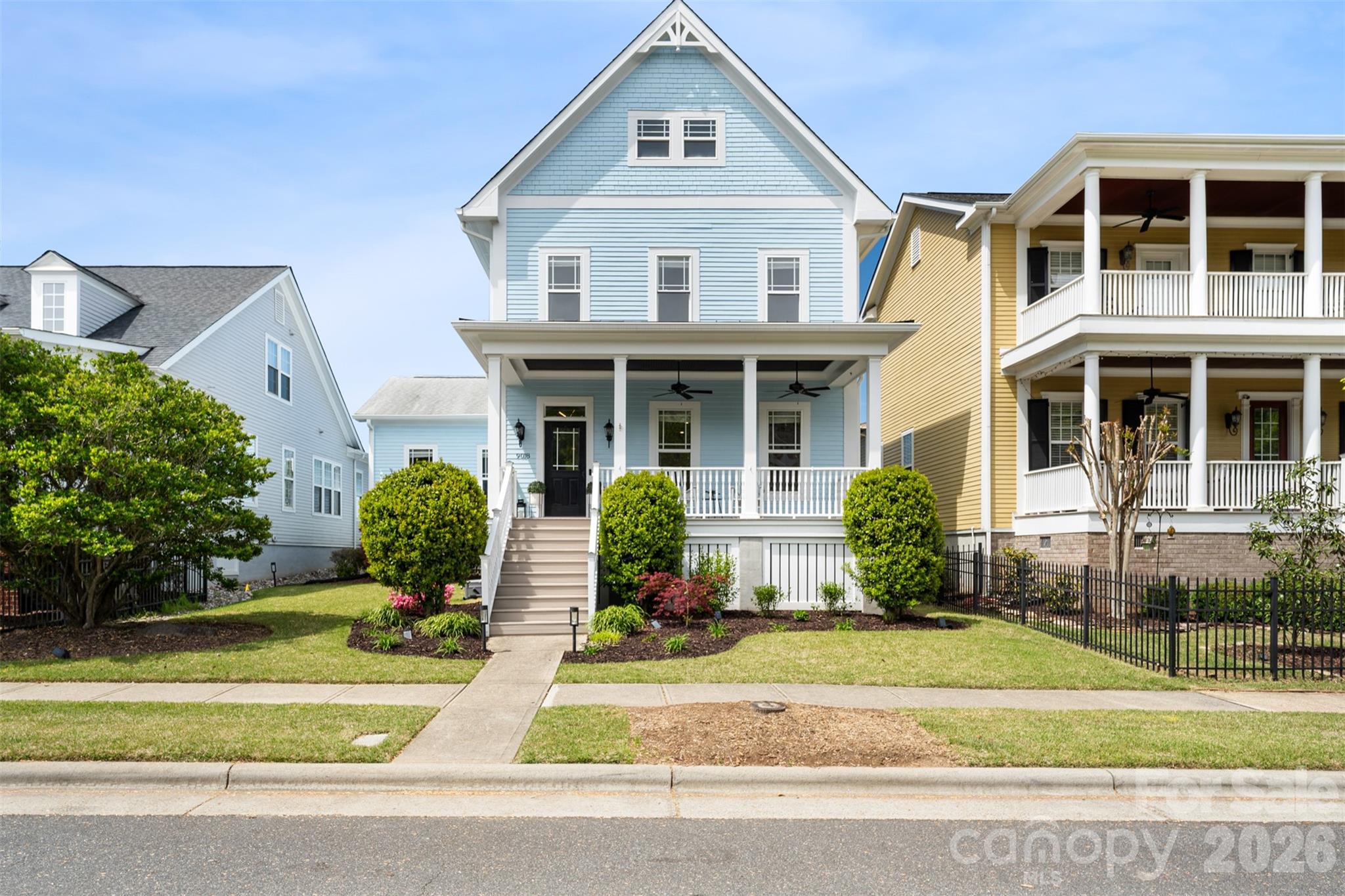 This Charleston-style residence offers 3,185 square feet of beautifully finished living space, with timeless Southern architecture and refined, modern design. Located in the highly sought after Ardrey neighborhood. From the moment you arrive, the home’s classic curb appeal is undeniable—welcomed by a charming covered front porch perfect for rocking chairs and relaxed evenings. Inside, the main level showcases rich hardwood floors, a light-filled and functional layout, and thoughtfully designed living spaces enhanced by custom built-ins and updated finishes throughout. The kitchen features fresh white cabinetry and a clean, modern aesthetic, seamlessly connecting to the main living areas for effortless everyday living and entertaining. The primary suite is conveniently located on the main level and serves as a private retreat, complete with hardwood flooring added in recent years. Bathrooms and the laundry room have been tastefully updated, while modern lighting throughout the home creates a cohesive, elevated feel that beautifully complements the Charleston-inspired exterior. Upstairs, you’ll find brand new carpet, and generously sized secondary bedrooms, each offering large walk-in closets. Additional walk-in storage throughout the home provides exceptional functionality. A true standout feature is the detached finished living quarters—complete with its own private full bath—offering a rare and highly versatile space ideal for multigenerational living, a private guest retreat, executive home office, or boutique-style home based business. This is a unique opportunity rarely found in the market. Outdoor living continues with a screened-in porch, perfect for year-round enjoyment, along with a rear-entry two-car garage accessed via a private alley, enhancing both convenience and curb appeal. A seamless blend of charm, modern updates, and flexible living spaces, this home presents a distinctive lifestyle opportunity in one of Charlotte’s most sought-after settings. Top-rated schools, close to the new Ballantyne Bowl and easy access to I-485. Yard maintained by the HOA, playground and greenery space/parks thoughout, clubhouse and pool.