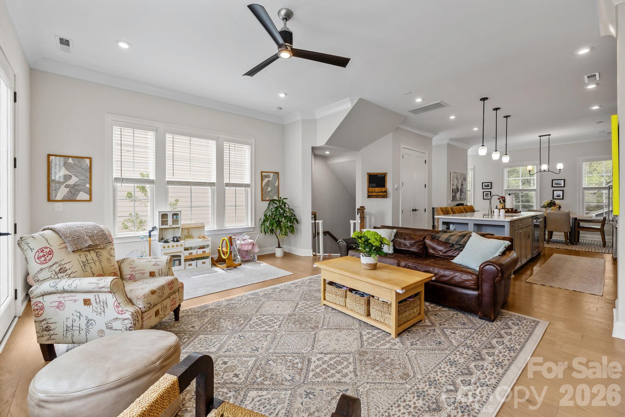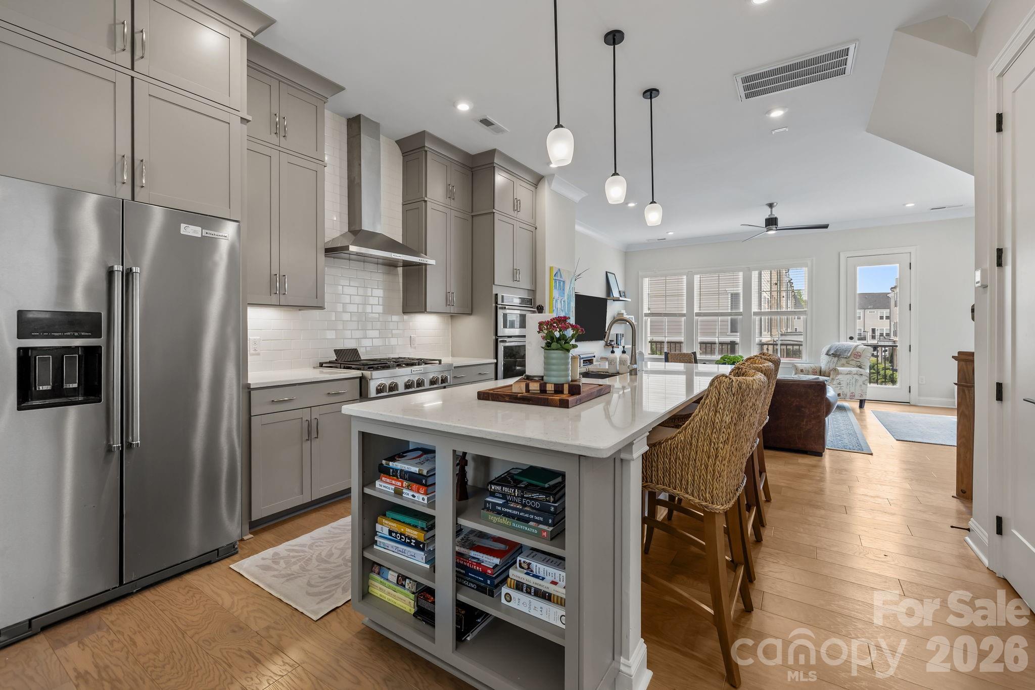 END UNIT sophistication in the heart of coveted Elizabeth. This refined townhome offers exceptional privacy & tranquil wooded views. A gracious foyer opens to a main-level BD w full BA—ideal for guests/private office—plus a 2-car garage w built-in storage. The 2nd level showcases elevated open-concept living w soaring ceilings, rich hardwoods & abundant natural light . The chef’s kitchen features a generous pantry, built-in refrigerator, 6-burner gas range & expansive island with seating, flowing seamlessly into the living area, with private balcony for refined entertaining. The 3rd level offers a luxurious primary suite w spa-inspired BA & generous walk-in closet, plus a secondary BD w en-suite BA. The 4th level includes a versatile loft, powder room & private rooftop terrace. 2,200 sq ft of curated living in one of CLT’s most desirable neighborhoods!