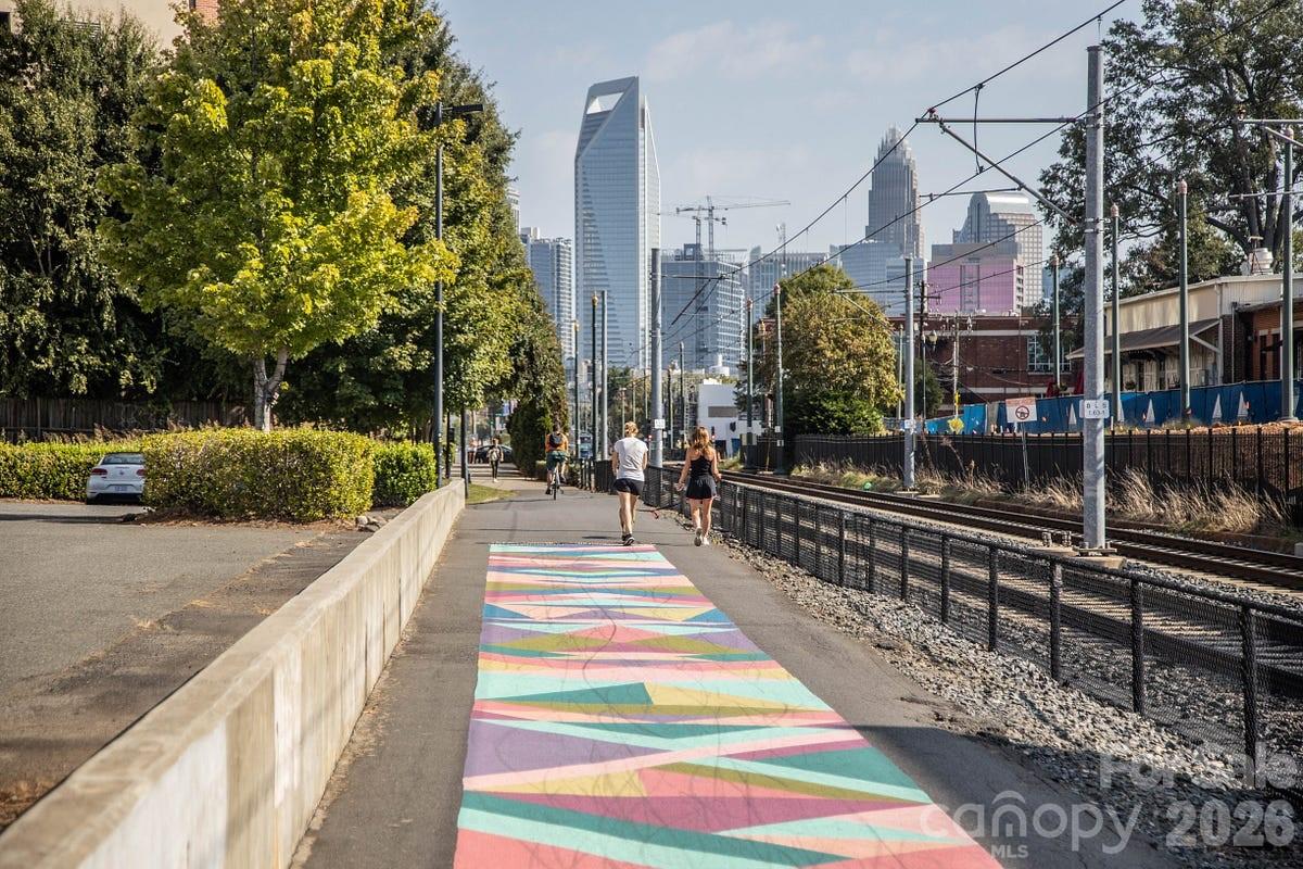 This modern two-story luxury townhome in Sedgefield, one of Charlotte’s most sought-after neighborhoods, is just minutes to Uptown Charlotte, South End, the Light Rail blue line, and the lively Rail Trail. This three-year-young custom-level home features an open floor plan, high ceilings, abundant natural light, and wide-plank flooring throughout the thoughtfully designed living space. The chef’s kitchen offers quartz countertops, an oversized island, stainless steel appliances, custom cabinetry, subway-tile backsplash, and vented hood, opening to a spacious living and dining area with access to the back deck and yard, making your new home perfect for entertaining. The expansive primary suite features a large walk-in closet and spa-like bathroom with dual vanities, tons of counter space, freestanding soaking tub, and a HUGE seamless glass-enclosed shower. Three generously sized additional bedrooms provide flexibility for a home office, home gym, guest rooms, or bonus space. Additional highlights include designer lighting, spacious second-level laundry room, large attached garage w/ EV charger, and ample storage. Enjoy the rare benefit of a 0.3-acre shared lot with NO HOA MANAGEMENT and NO HOA FEES to worry about —offering flexibility that’s hard to find this close to the city. There's never a dull moment in this community, with plenty of local restaurants, breweries, shopping, and grocery options a few blocks down the street in Southend, as well as easy access to parks and walking trails just minutes from your front door. With quick access to Dilworth, Southpark, Myers Park, NoDa, Charlotte Douglas Airport, and major commuter routes, your new home combines modern design with unbeatable location! If you’re looking for low-maintenance living with high lifestyle value, this one checks all the boxes.This is a rare opportunity in such a desirable neighborhood! Be sure to schedule your tour today!!