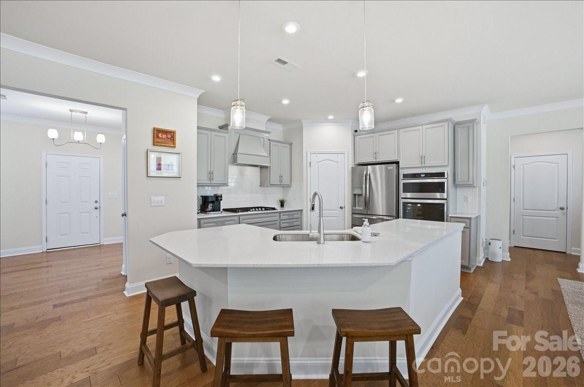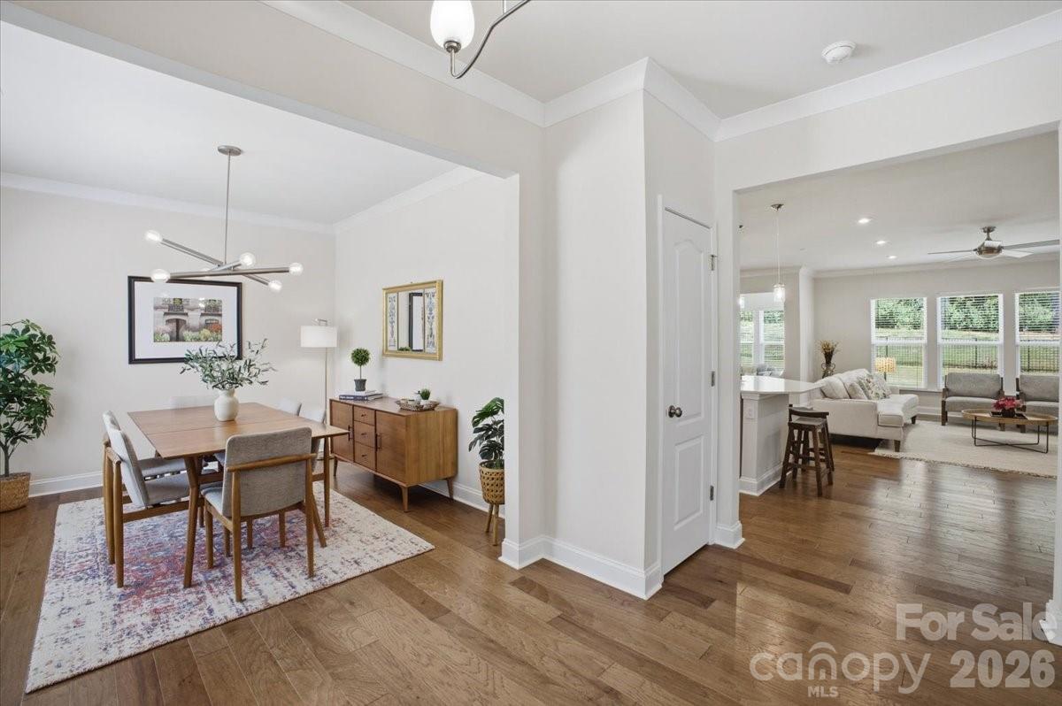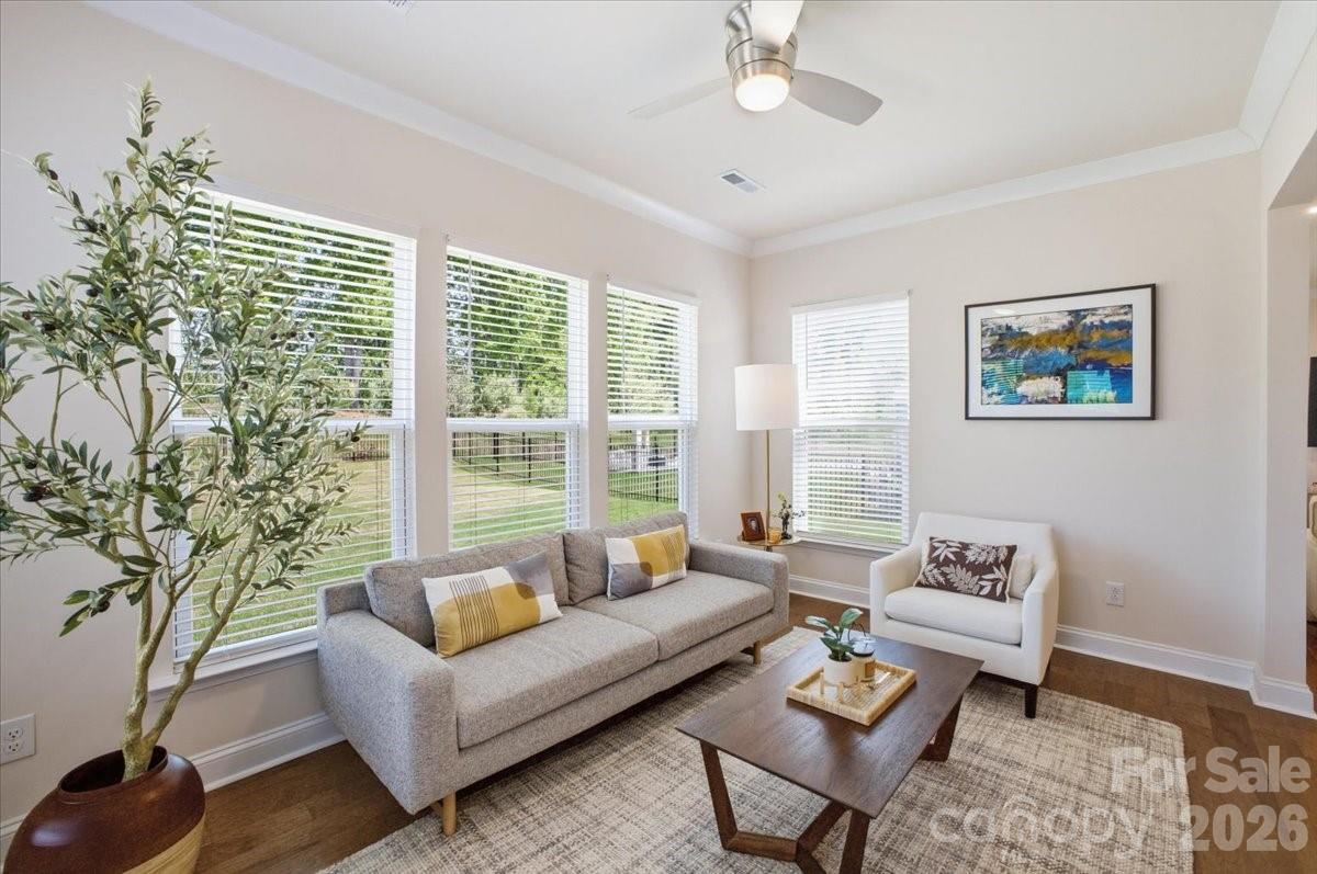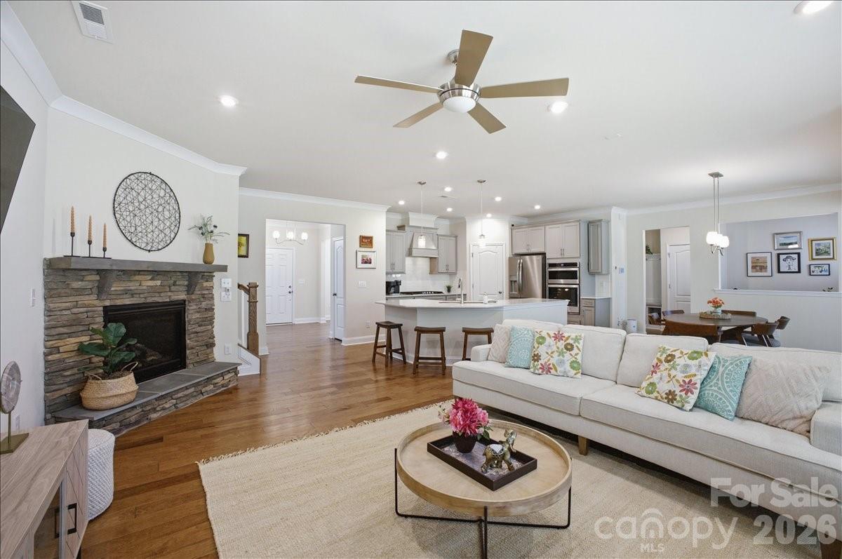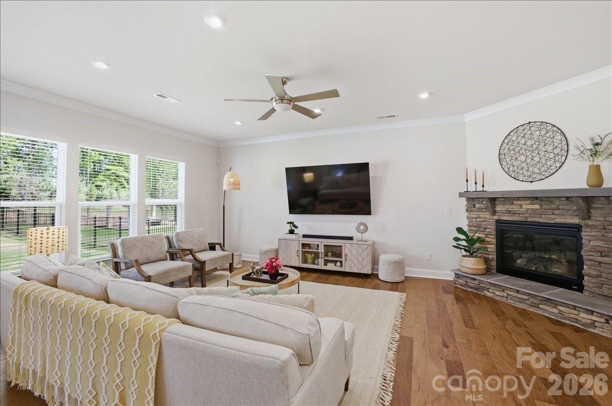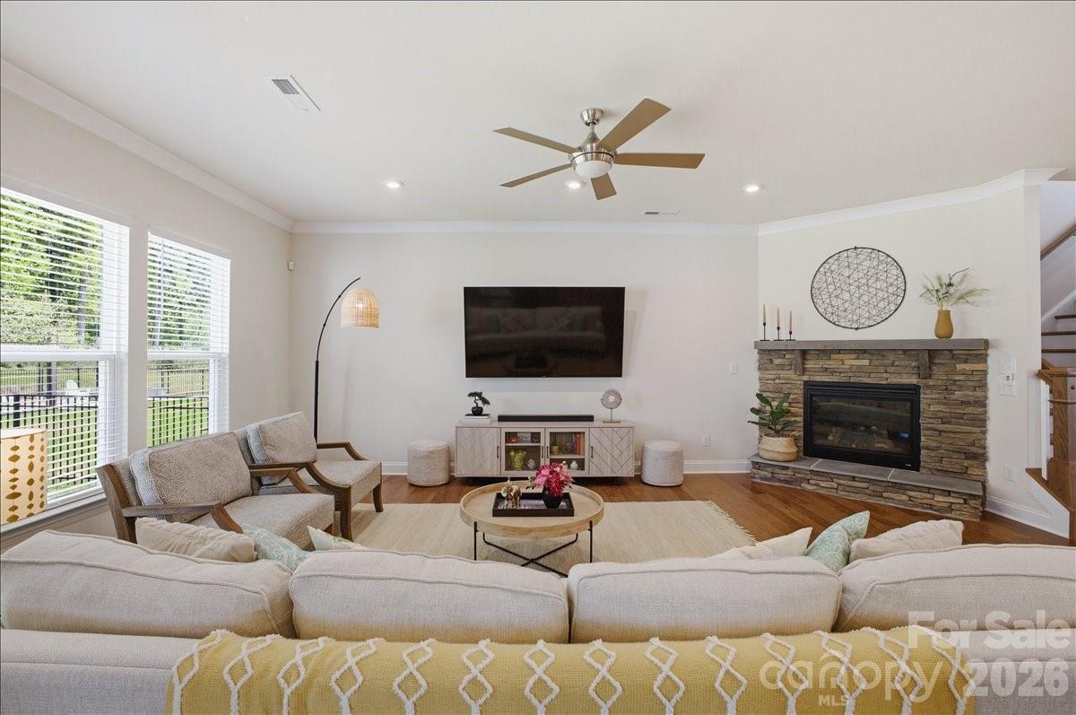 Welcome to 11432 Oakhampton Way, a beautifully designed home nestled in the sought-after Castleford Reserve community next to Waverly. This pristine 4-bedroom home offers the perfect blend of functionality, comfort, and modern style—ideal for both everyday living and entertaining. The main level features an expansive layout with abundant living space and a seamless flow throughout. A welcoming foyer creates a warm first impression, while the inviting living room with gas log fireplace provides the perfect setting for cozy evenings or gathering with guests. A defined mudroom adds convenience and organization to daily life, making this home as practical as it is beautiful. At the heart of the home, the open-concept kitchen is designed to impress, featuring a large island, granite countertops, stainless steel appliances, a stylish tile backsplash, and designer cabinetry—perfect for both casual meals and entertaining. Upstairs, the generously sized primary suite serves as a true retreat, complete with a large ensuite bathroom and an impressive custom-fitted walk-in closet. The closet also offers access to additional attic storage-a highly functional feature. The well appointed secondary bedrooms are spacious. Throughout the home, you’ll find upscale finishes including hardwood flooring on the main level, detailed trim work, modern lighting, and spa-inspired bathrooms with upgraded tile and fixtures, creating a polished and elevated living experience. The backyard is fenced, backs to a wooded area and is ready for your vision! This home features an in-ground irrigation system. Ideally located just minutes from Waverly and Rea Farms, Castleford Reserve offers convenient access to premier shopping, dining, grocery, and fitness options, while also being close to Ballantyne, Blakeney, SouthPark, and Uptown Charlotte. With easy access to I-485 and Providence Road, commuting and daily errands are effortless. Walk to Waverly and enjoy all this shopping and dining area has to offer! Combining space, thoughtful design, and an unbeatable location, this home presents an exceptional opportunity to enjoy the best of South Charlotte/Matthews living in a vibrant and connected community.
