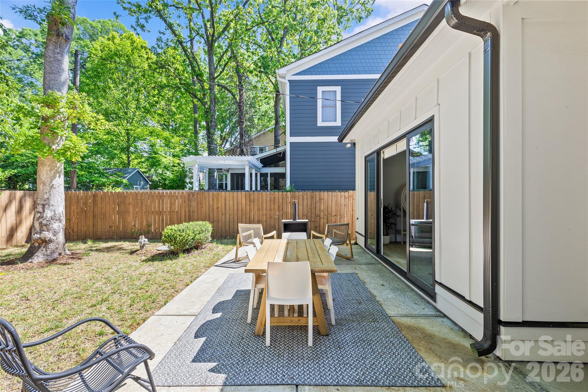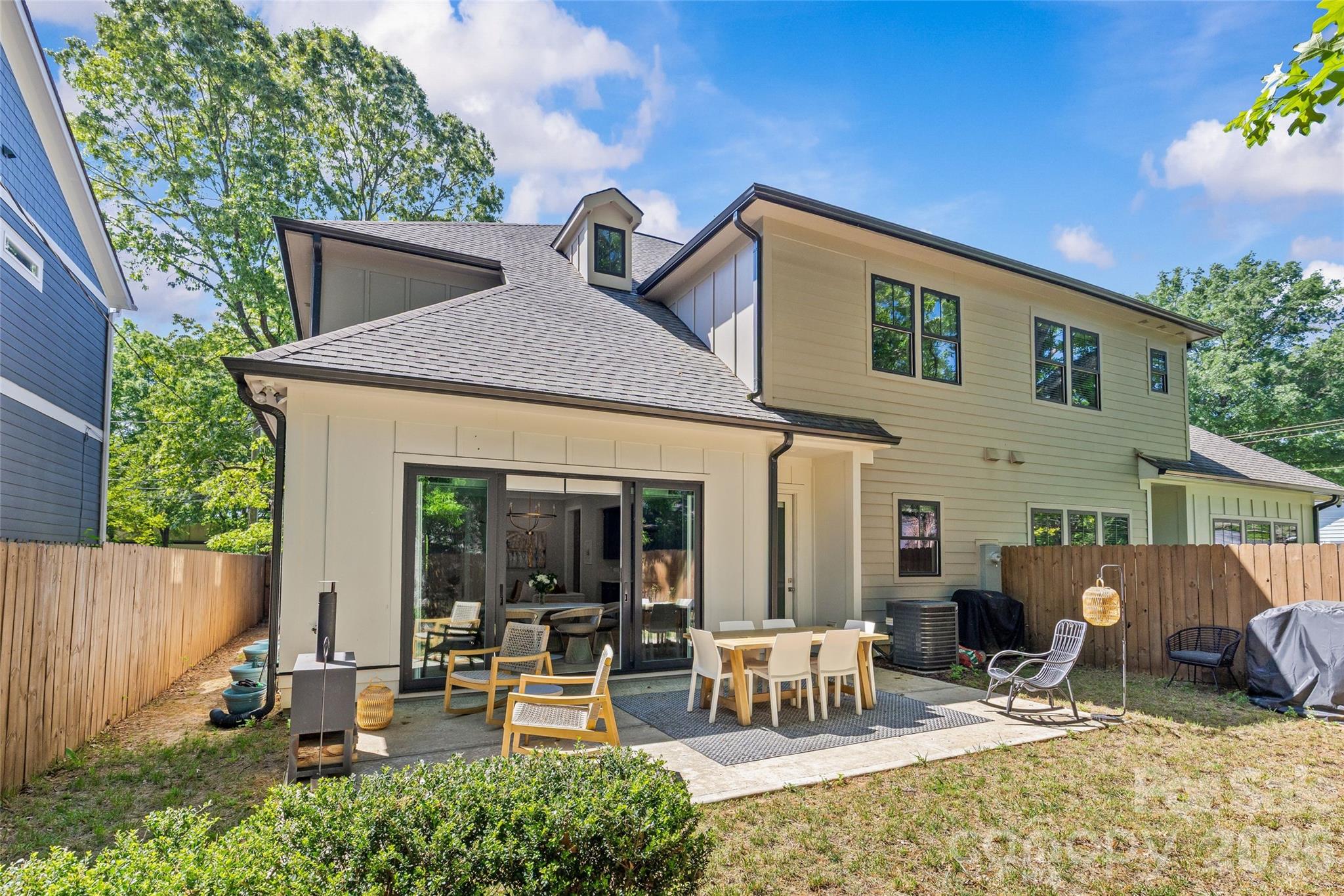 Welcome to 3505 Oakwood Ave, a gorgeous 2023-built home in the highly desirable NoDa neighborhood—move-in ready from day one, and full of upgrades. Upon entry, you'll love the seamless flow between the living, dining, and kitchen areas. The kitchen shines with a huge quartz island, JennAir appliances, and upgraded cabinetry, while smart lighting and motorized shades add everyday ease. Completing the first floor living space is a flexible office or bedroom with attached full bathroom. Continue outside to a charming patio perfectly sized for relaxing or entertaining. Upstairs offers a gorgeous primary suite with a stunning California Custom closet, as well as additional built-in closet storage, and a spa-inspired ensuite. There are two more bedrooms, a full bathroom, and a versatile flex room. The garage is finished with epoxy floors, built-in storage, and universal EV charging. Additional upgrades include whole-house water filtration, integrated security, and motorized blackout shades — all done for you. Minutes from NoDa's restaurants, breweries, and shops with easy access to Plaza Midwood, Uptown and more!