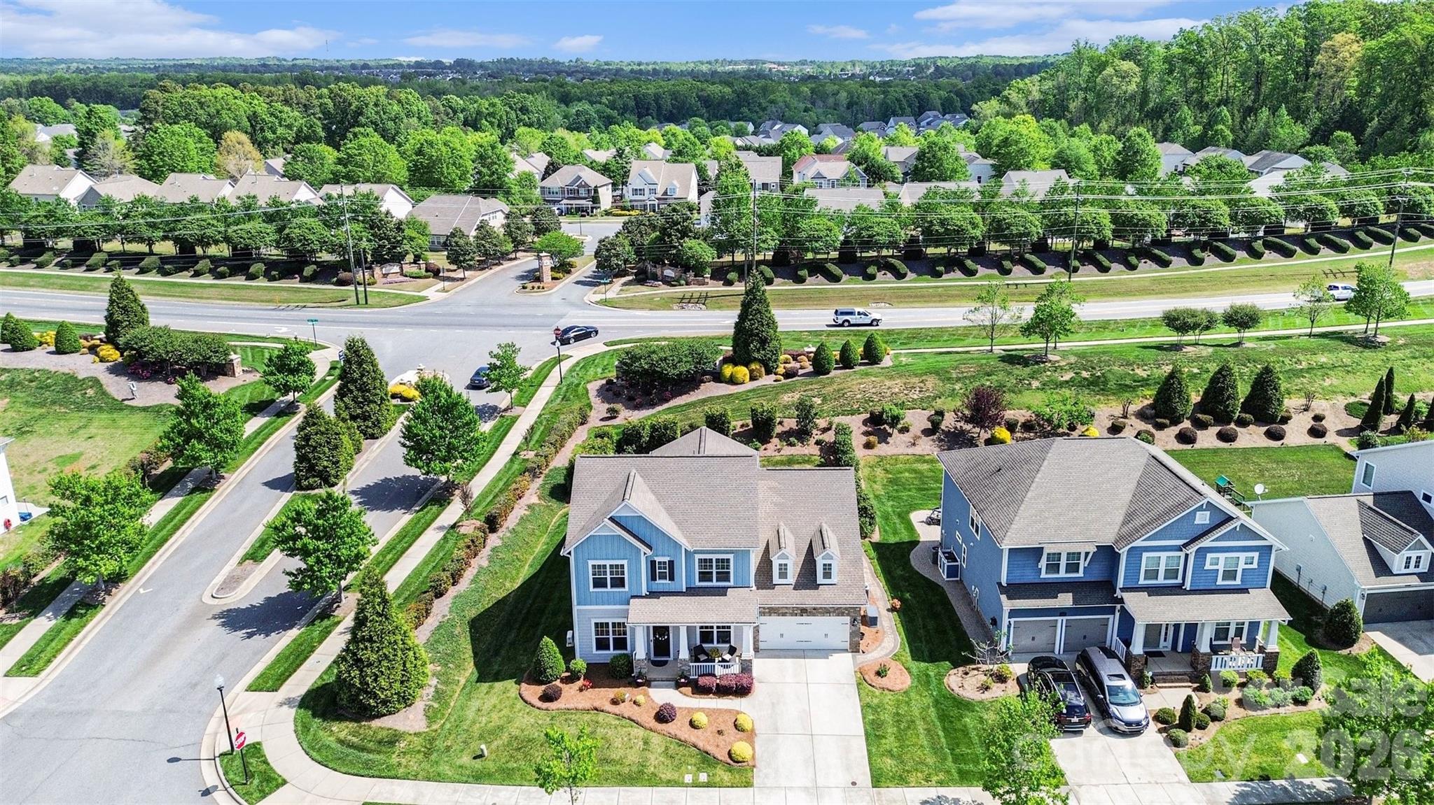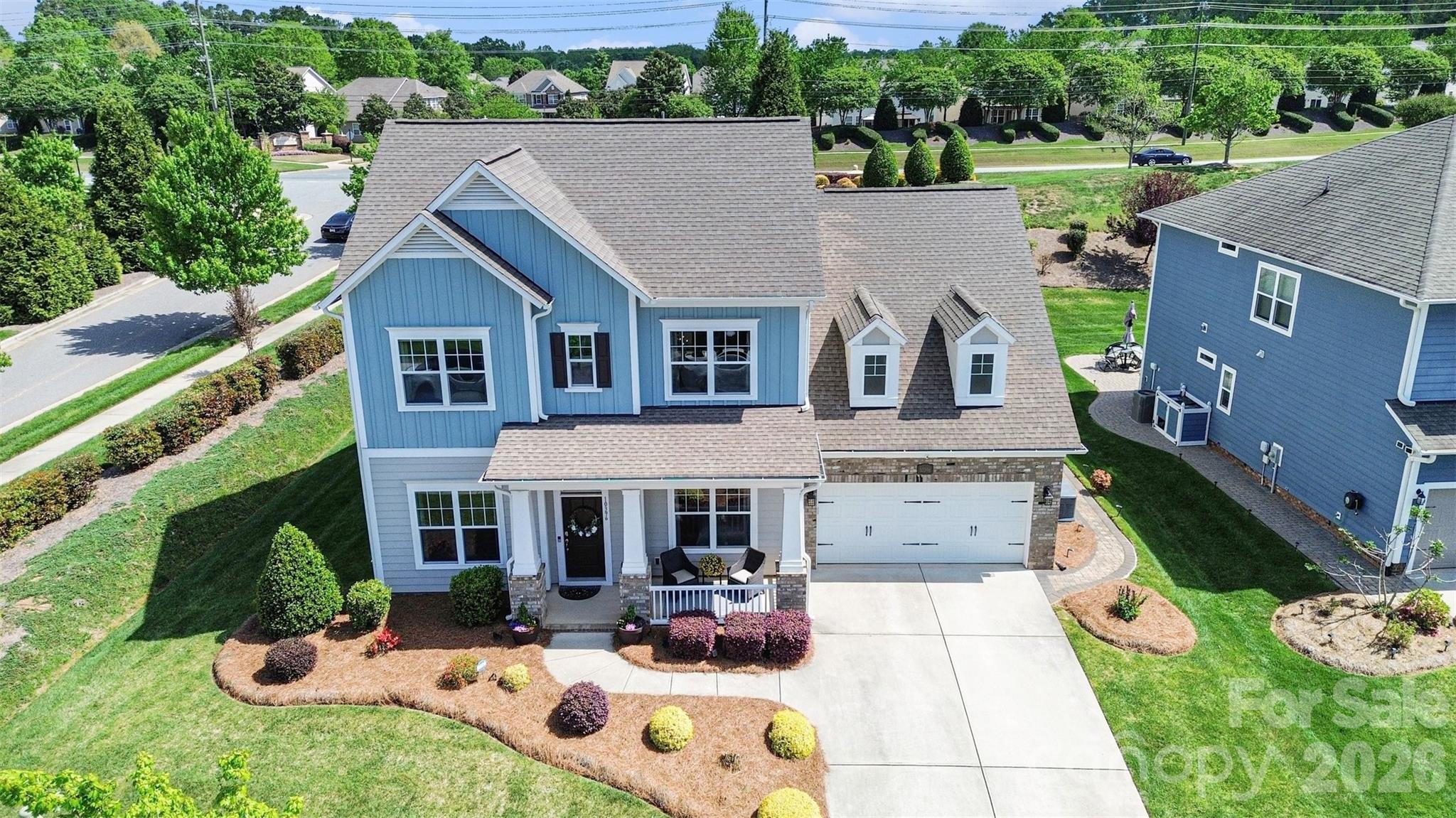 Welcome to this beautifully designed custom David Weekley home in Skybrook North, where timeless curb appeal and thoughtful living spaces come together seamlessly. A charming covered front porch sets the tone, leading into a bright, airy interior filled with natural light, elevated ceilings, and a clean, modern aesthetic. The main level is anchored by an open-concept living area that flows effortlessly from the spacious family room with a cozy fireplace into the dining area and a stunning kitchen designed for both everyday living and entertaining. Large windows frame views of the backyard and bring in abundant light, while the layout creates a natural gathering space at the heart of the home. The primary suite on the main level offers a peaceful retreat, featuring a spacious bedroom and a beautifully appointed bath with a spa-like feel. Also on the main level, you’ll find an additional full bedroom and bath—ideal for guests, multi-generational living, or a private home office—providing flexibility that is hard to find. Upstairs, the second floor is thoughtfully designed to maximize both privacy and functionality. Each bedroom offers direct access to a full bath, creating a comfortable and convenient setup for family and guests alike. Two separate bonus or flex spaces provide incredible versatility for a media room, playroom, home gym, or additional lounge areas, while walk-in attic spaces offer abundant, easily accessible storage without sacrificing living space. Outdoor living is just as inviting, with a covered rear patio that extends your living space outdoors, overlooking a well-maintained, level backyard. A built-in grill creates the perfect setting for entertaining and dining al fresco, making it easy to enjoy gatherings year-round. Additional highlights include the peace of mind and convenience of a whole-home generator, ensuring comfort and reliability no matter the season. Located within the desirable Skybrook community, residents enjoy convenient access to golf, pools, walking trails, and clubhouse amenities, along with nearby shopping, dining, and everyday conveniences. Commuting is easy with quick access to major roadways, while the surrounding area offers a blend ofsuburban comfort and vibrant local attractions. With five bedrooms and four full baths across a thoughtfully designed layout, this home combines comfort, style, and functionality in one of the area’s most sought-after neighborhoods.