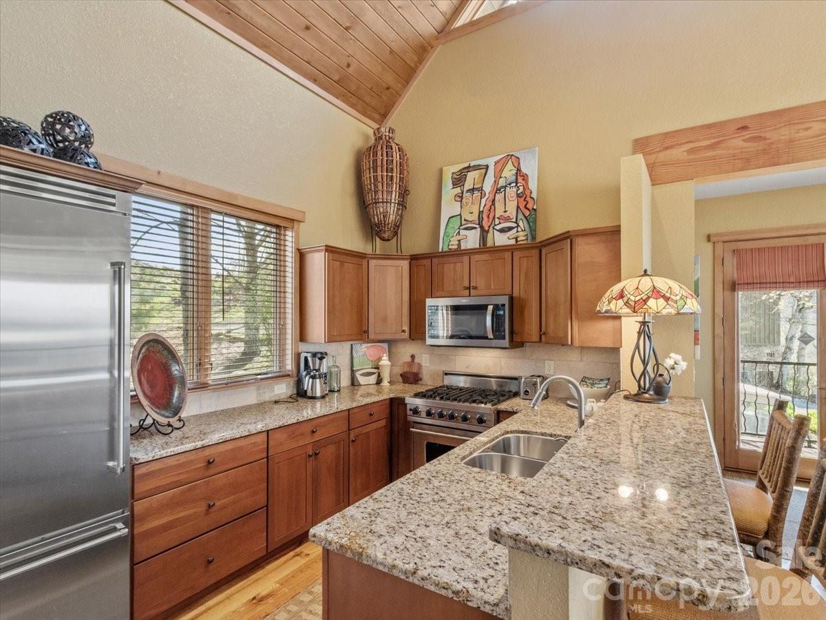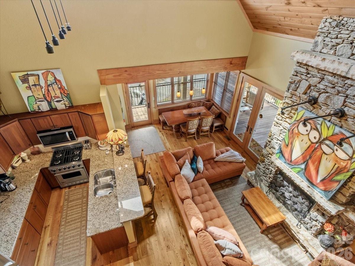Adorable cottage perched above the mountaintops in the Hawk's Ledge neighborhood. UNIQUE AVAILABILITY and MOVE-IN-READY cottage offers 2B, 2B with an open-floorplan, floor to ceiling stone fireplace, custom wrought-iron staircase railing, window treatments, SS appliances, granite countertops and hardwood floors throughout! The wrap-around porch with additional fireplace is the ideal spot to soak-in the multi-layered Blue Ridge Mountain vistas! The Hawk's Ledge neighborhood park doubles as your backyard AND you're a stone's throw from the clubhouse, ProShop, tennis/pickleball courts, fitness center, Falling Leaf Lodge and spa! Take advantage of this lock and leave opportunity and experience all that Mountain Air has to offer! MOUNTAIN AIR property owners enjoy all paved access, 24/7 manned guard-gate, multiple parks, hiking trails, and a private runway! Optional club memberships available. Ideal as a full-time residence, vacation getaway, or short-term rental investment. Mountain Air is located a short drive from the town of Burnsville and 30 minutes to Asheville, NC or Johnson City, TN. ***Seller will include a four-seater Club Car (2024) and pay $15,000.00 toward a Social Membership with an acceptable Offer*** ***Please take a moment to view the video link below***