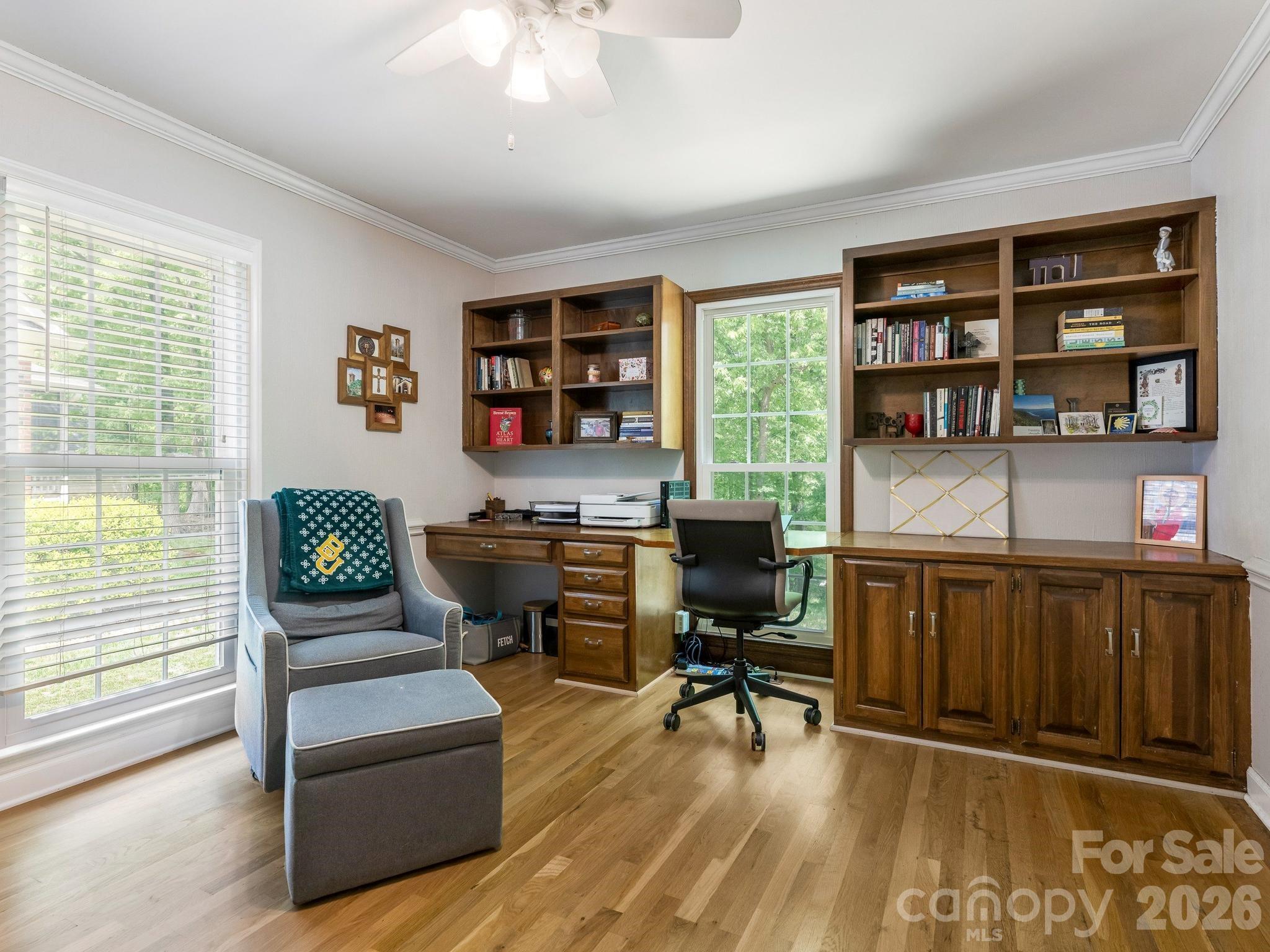 Welcome to 5017 Lindstrom Drive, a classic two-story home set on a beautifully flat and private 0.52-acre lot in the desirable Quail View neighborhood. Surrounded by mature trees and established homes, this property offers a rare combination of space, setting, and location just minutes from SouthPark. Inside, the home features nearly 3,000 square feet with a traditional, well-defined layout that provides both everyday functionality and flexibility. Hardwood floors, crown and chair molding, neutral paint, and abundant natural light create a warm, inviting feel throughout the main living areas. The kitchen connects easily to a breakfast area and great room, while formal living and dining spaces offer additional room to gather and entertain. Upstairs, the primary suite has been thoughtfully renovated to include a walk-in shower, complemented by three additional bedrooms and a spacious bonus room ideal for a playroom, media space, or secondary living area. A dedicated office on the main level and laundry room add to the home’s practical layout. Outdoor living is a true highlight, with a large back deck overlooking the expansive, usable backyard—perfect for entertaining, play, or simply enjoying the privacy of the tree-lined setting. Located in a quiet, established neighborhood known for its charm and convenience, this home presents a compelling opportunity to enjoy a larger lot and timeless layout in one of South Charlotte’s most sought-after areas.