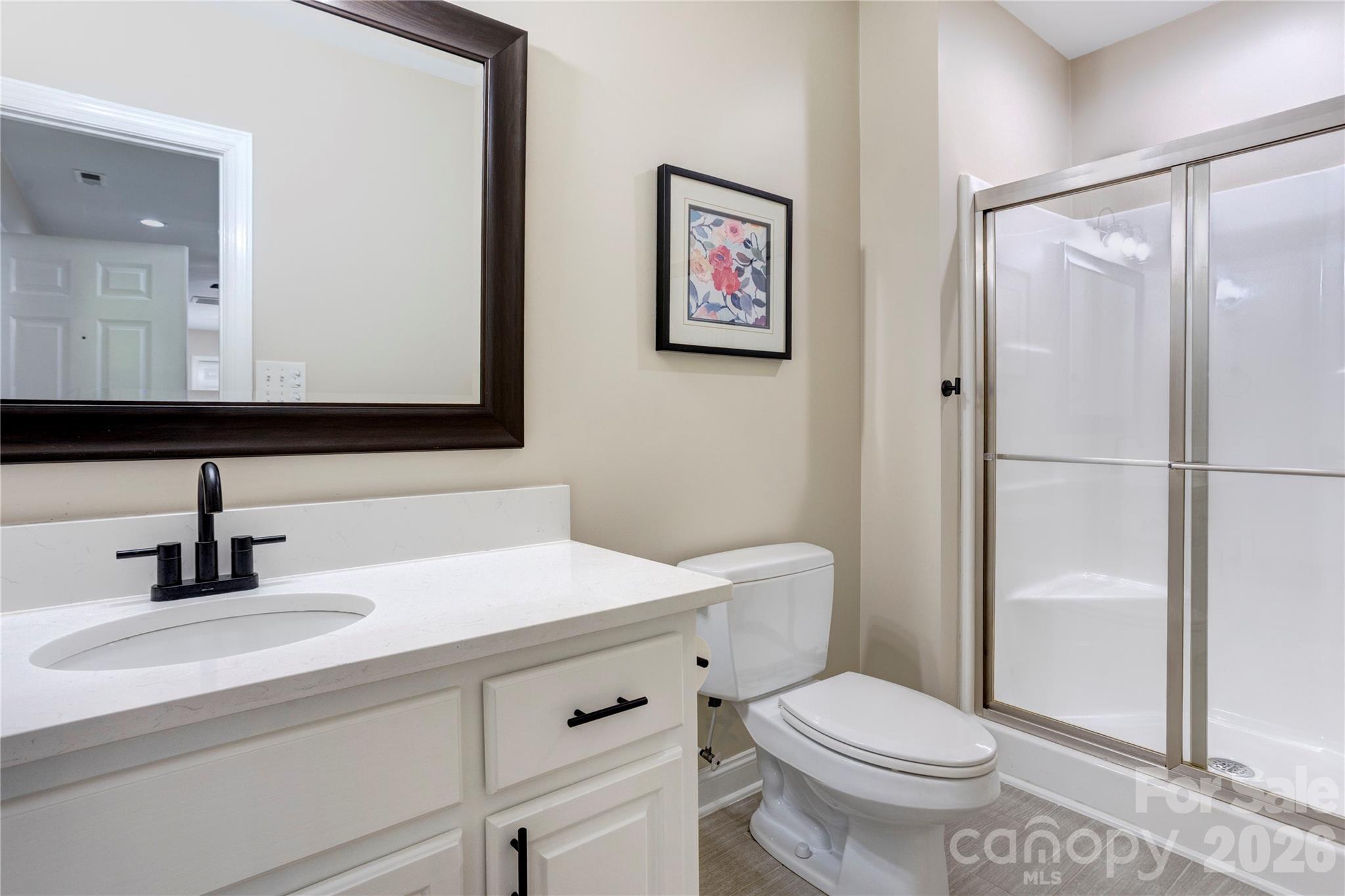 Multiple Offers - Please submit all offers by 7:00 PM on Sunday, 4/26. Tucked into the desirable Freedom Acres community, this beautifully updated full-brick home offers refined style, thoughtful upgrades, and exceptional indoor-outdoor living—in a prime Concord location minutes from grocery stores, dining, pharmacies, and Interstate 85. With over 3,700 square feet PLUS additional unfinished workshop space, this 5-bedroom, 4.5-bath home blends elegance with comfort. The main level features a spacious, open layout where the kitchen, dining, and family room flow together, centered around a gas fireplace with stone surround. A fully renovated kitchen (2020) keeps its functional layout while elevating every detail—quartz countertops, updated appliances, a large island with deep drawers, a touchless sink, and pull-out storage. The primary suite on the main floor is a true retreat, complete with a tray ceiling, plantation shutters, a LARGE walk-in closet, and a beautifully renovated bath (2022) featuring quartz countertops, tiled floors, a jetted tub, and a tiled walk-in shower with dual shower heads. Upstairs, you’ll find four generously sized bedrooms and two full baths, along with newer carpet (2020). The basement is designed for entertaining and easy living, especially for gatherings that flow in from the pool. With durable tile flooring, a full bathroom, a spacious living area, and a second full kitchen (complete with wine fridge, stove, refrigerator, and double sink), it’s the perfect extension of the home for hosting. The unfinished workshop/garage space is heated and cooled, offering incredible versatility. Step outside and the property truly shines. A screened porch and Trex deck overlook a private backyard oasis featuring a saltwater gunite pool with sun ledge, spillover feature, and lighting. The fenced pool area is complemented by a covered equipment structure, patio with pavers, and shaded space beneath the deck—ideal for relaxing out of the sun. Beyond, a flat yard and wooded area connected by a charming bridge provide even more room to enjoy. Additional highlights include an oversized 2-car garage with a sink and drop zone entry, an extra-wide driveway with parking for 3 vehicles side-by-side, fresh interior paint (2026), updated fixtures (2025), and three HVAC units, including a newer basement system (~3 years). This home offers a rare combination of space, privacy, and thoughtful design—all in a location that keeps everyday conveniences within easy reach.