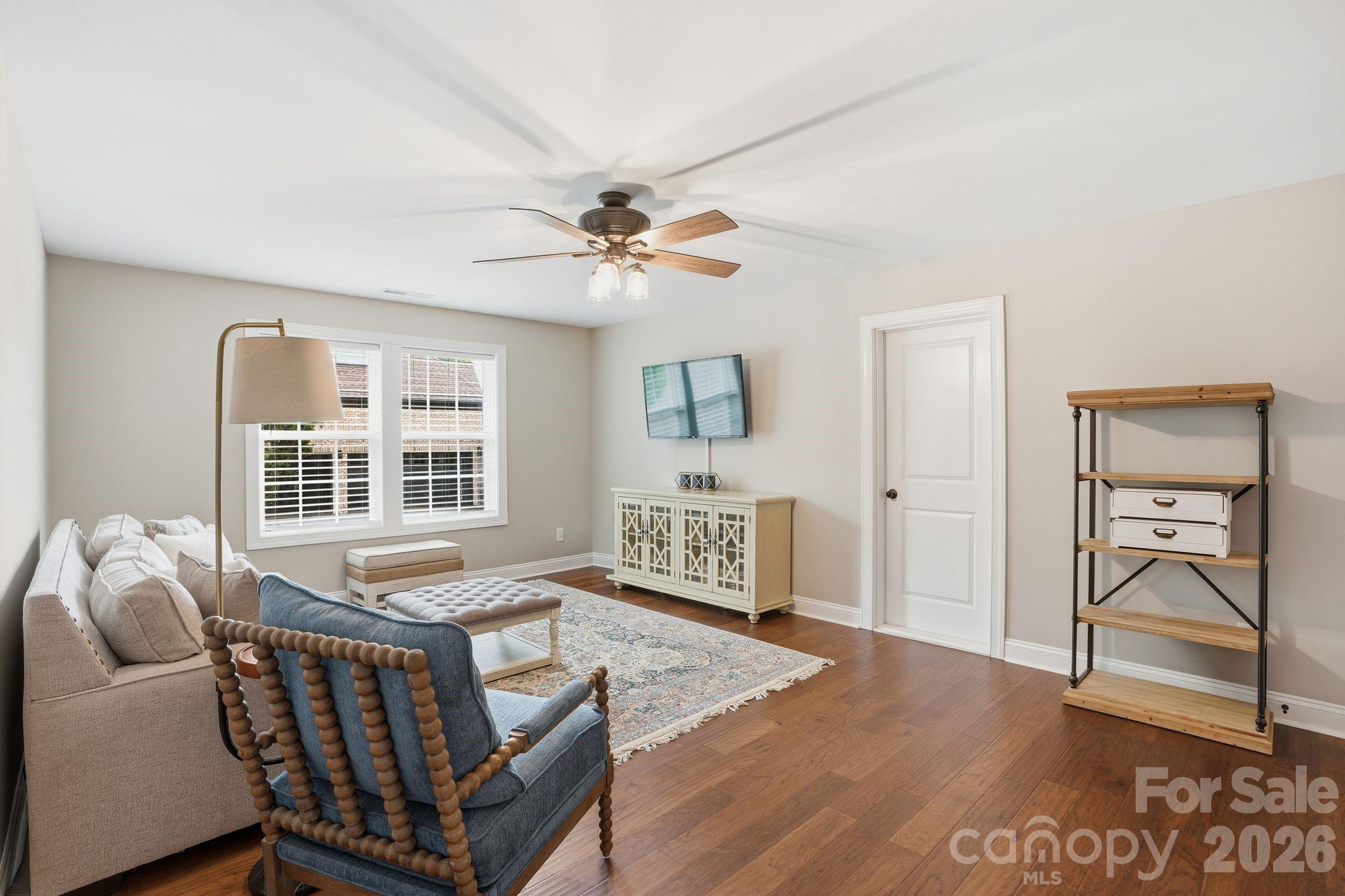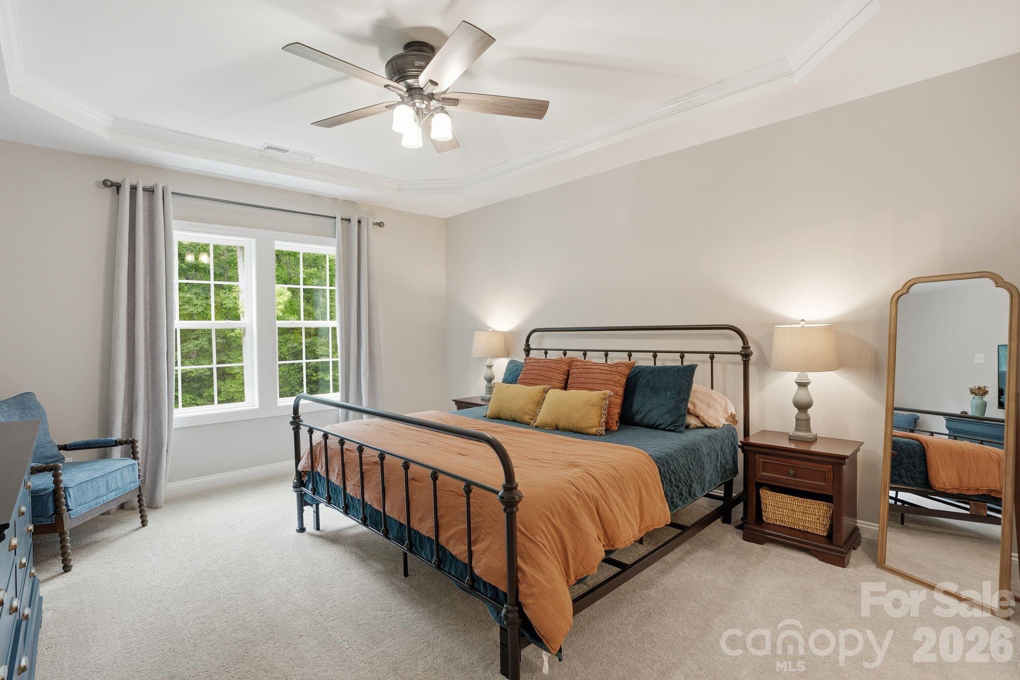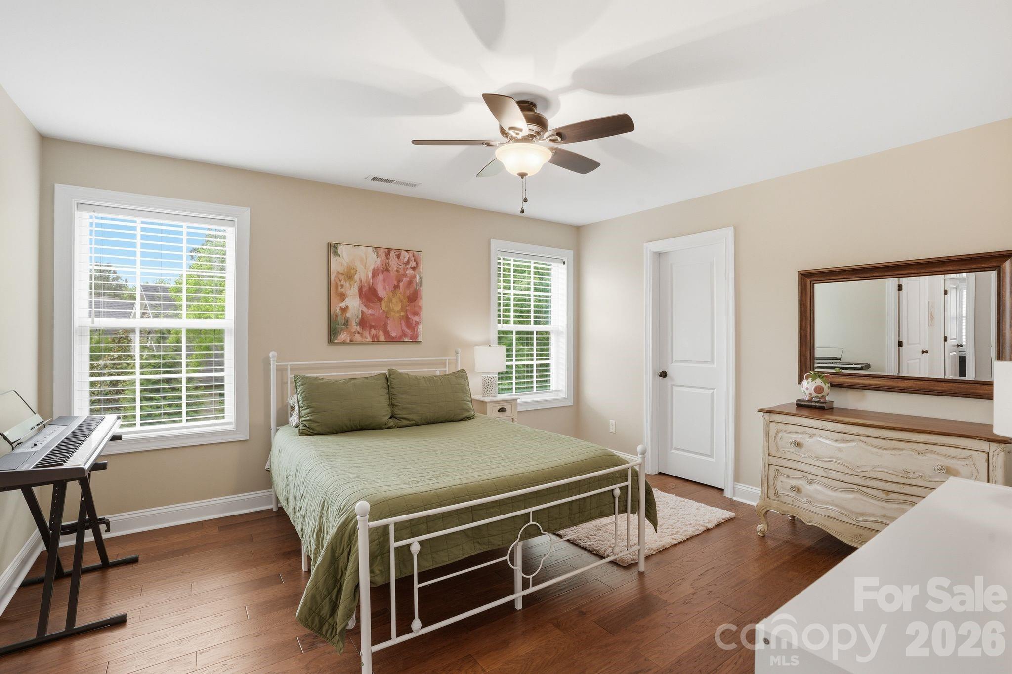 Welcome to this stunning 6-bedroom, 3.5-bath home that truly has the space, layout, and setting today’s buyers are searching for. Every bedroom features its own walk-in closet, giving everyone room to spread out without sacrificing storage. The heart of the home is the gorgeous kitchen, complete with a large island that’s perfect for gathering, entertaining, or everyday living. It opens seamlessly into the main living areas, creating a layout that just makes sense for both busy days and hosting friends and family. The primary suite on the main level offers a private retreat with a tray ceiling, spacious walk-in closet, and an ensuite bath featuring dual vanities, a soaking tub, and separate shower. Upstairs, you’ll find five additional bedrooms, two full bathrooms, and a huge bonus room, perfect for a media room, playroom, or second living space. Step outside and you’ll immediately feel the peace this property offers. Backing up to trees, the covered back porch is the perfect place to start your mornings with a cup of coffee while listening to the birds, or unwind at the end of the day. Home as an irrigation system which keeps your yard looking good with little effort. Located in a sought-after neighborhood with a community pool this home checks all the boxes for space, function, and lifestyle.
